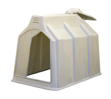 Светлый материал домика обеспечивает защиту животных от УФ-излучения и перегрева в жару. Домик проветривается. Входной проем имеет смещение для дополнительной защиты от осадков. В конструкции домиков отсутствуют элементы, которые могут повредить кожу животных. Малый вес, удобство установки и перевозки