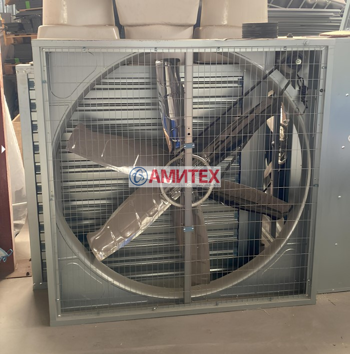 Осевой вентилятор в квадратном корпусе с рабочим колесом диаметром 1400 мм (6 лопастей) 1530x1530x400 мм (1,5 кВт, 380 В, 50 Гц, 3 фазы), двигатель 1400 об/мин, рабочее колесо 325 об/мин, производительность 55800 м3/ч, 60 Па, шум ≤70 дБ, защитная сетка/заслонка